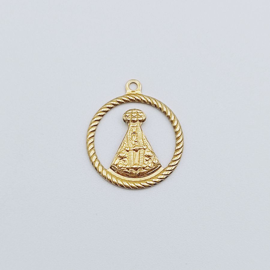Medalha redonda N.S. Aparecida com aro torcido vazado